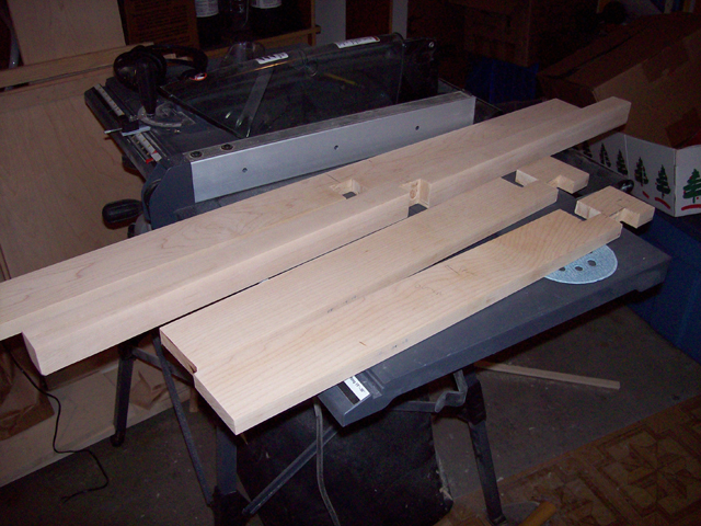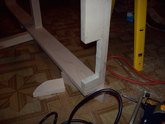 Close-up view of the side supports of the front frame. The notches were chiseled.