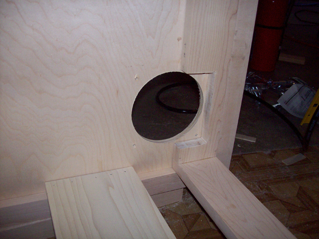 Rear view of the assembled body with the sides and the front cross member and bottom planks installed.
