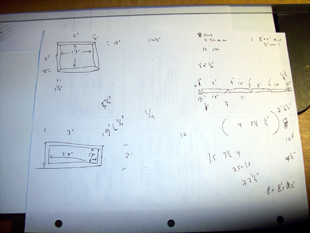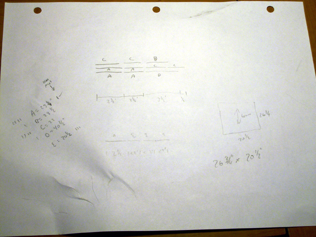 This page documents the design phase of the project. After measuring my existing computers to determine what dimensions I needed and measuring the current furniture in the computer room, I made some rough sketches of what I was planning to build and then a more detailed drawing. I also made some drawings to determine how I would need to cut the wood I bought in order to produce the parts I needed.