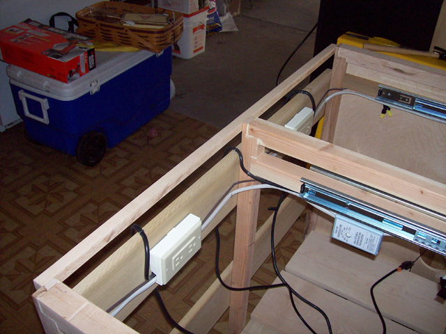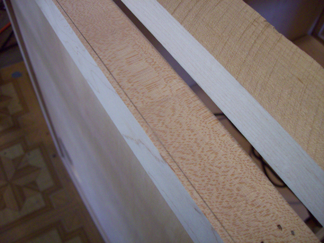A saw guide was added to the cabinet base to help cut the side to fit the top. The cabinet was built slightly out of square.
