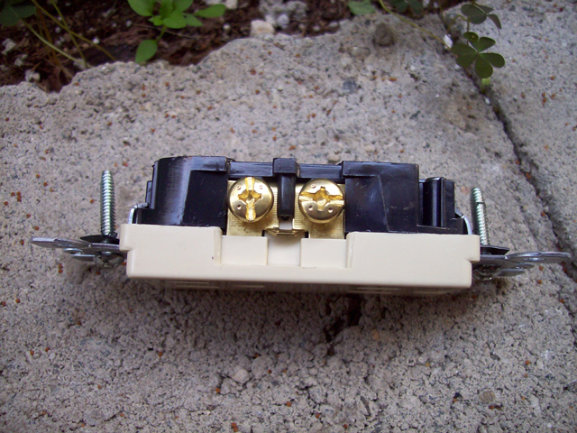 View of the bay power outlet housing with the hot leads connected.
