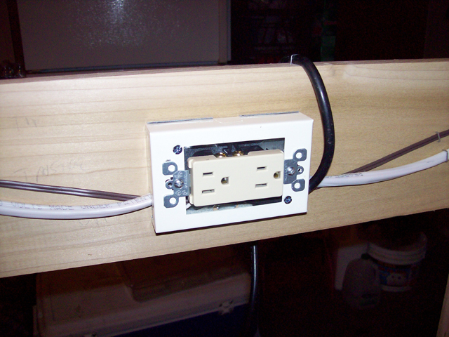 The switch wiring and the power cord ready for installation of the bay outlet.