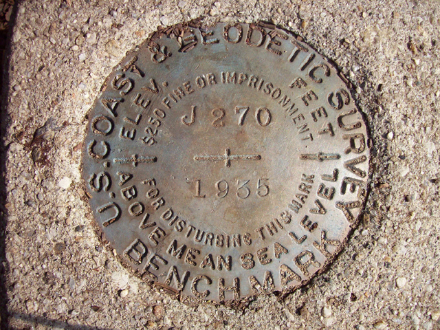 HR0840 - J 270. Close-up view of a vertical control mark in Yosemite.