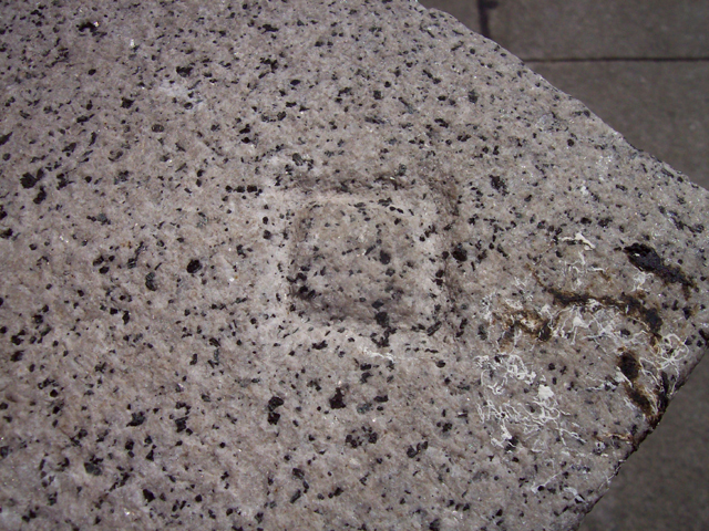 HT0748 - Chiseled Square. View of the mark, chiseled into a granite foundation stone for the old Federal Office Building.