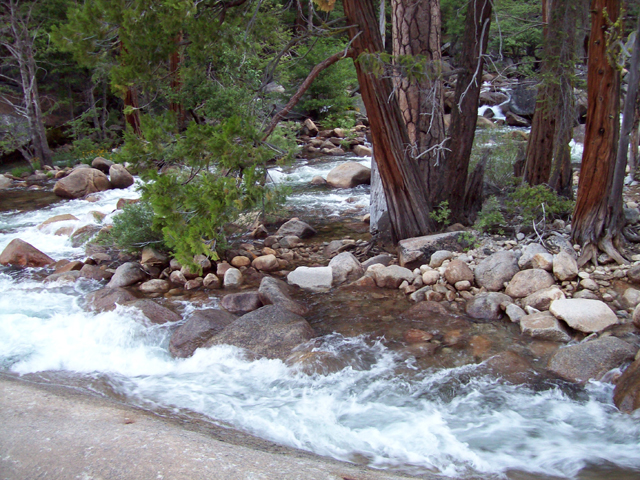 View looking upstream of the Merced River near the top of Vernal Fall.