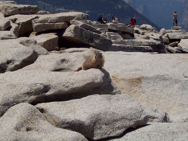 A yellow-bellied marmot hanging out on top of Half Dome.